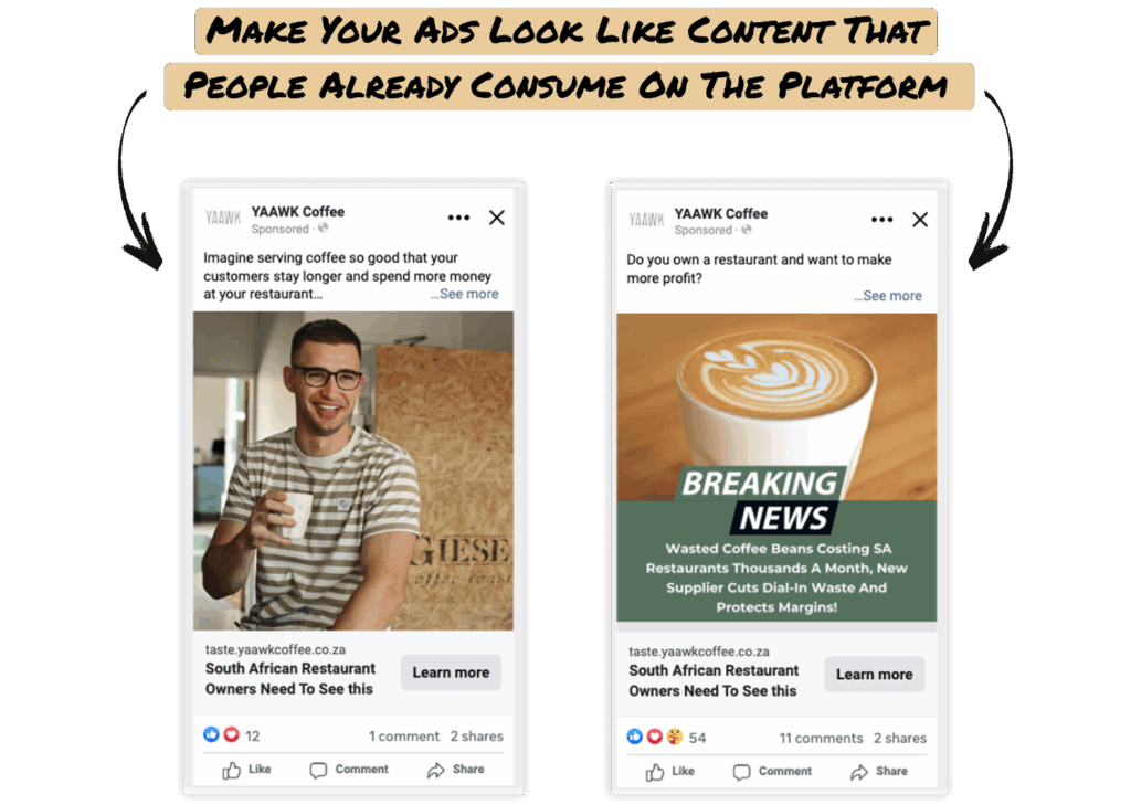 Your ad should look like a regular post from a friend or an interesting article someone shared.