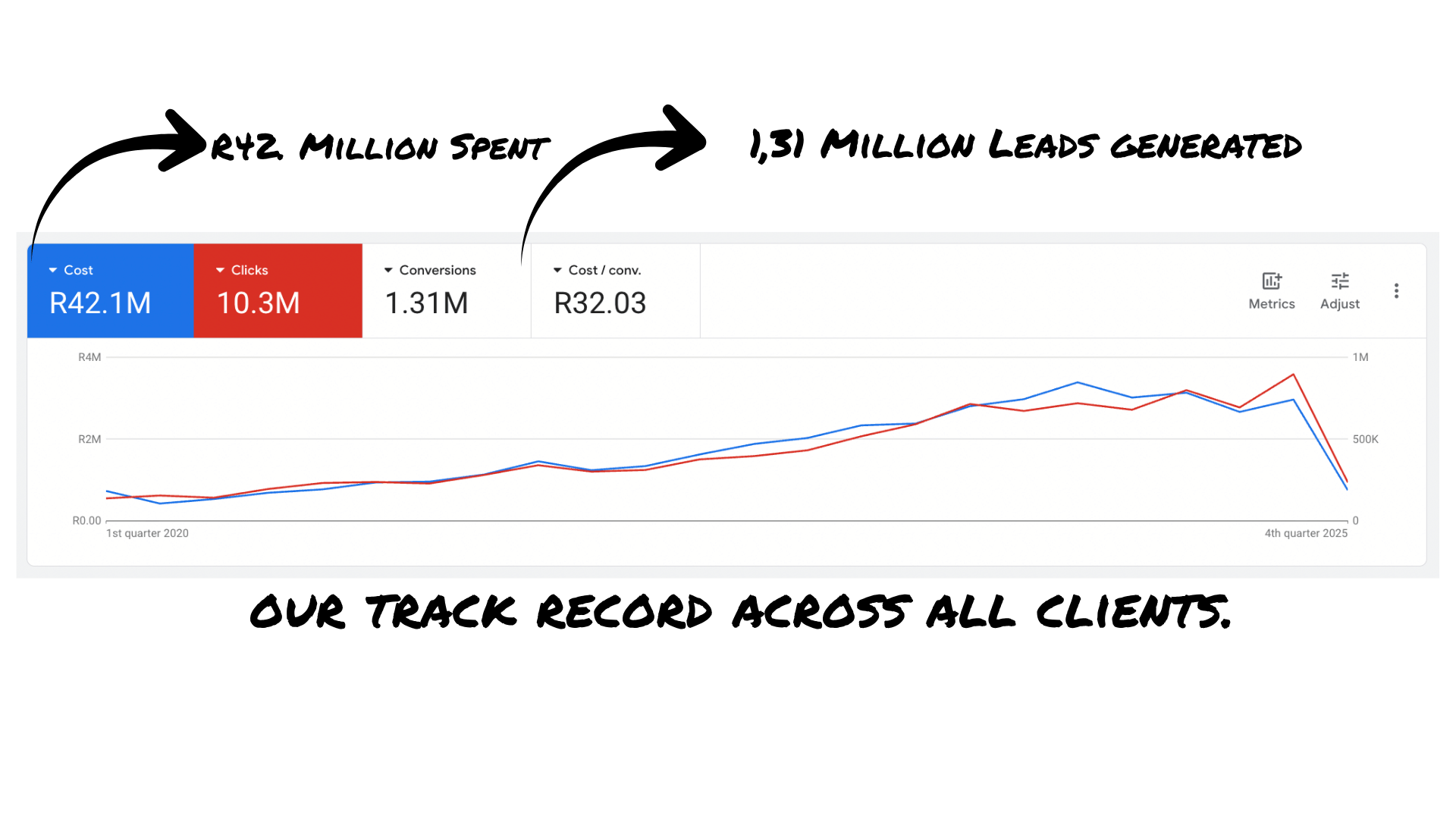 As a leading Google Ads Agency, we’ve recovered Google Ads profitability for over 125 businesses just like yours and helped them restore over R10 million in previously wasted ad spend.