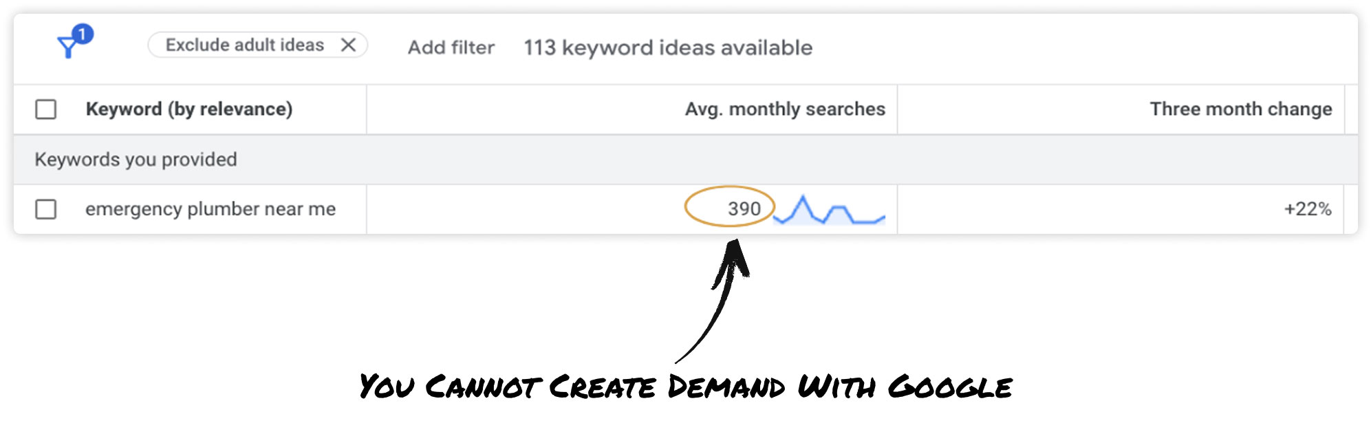 But your ad talks about “plumbing services” in general. It doesn’t mention emergencies.