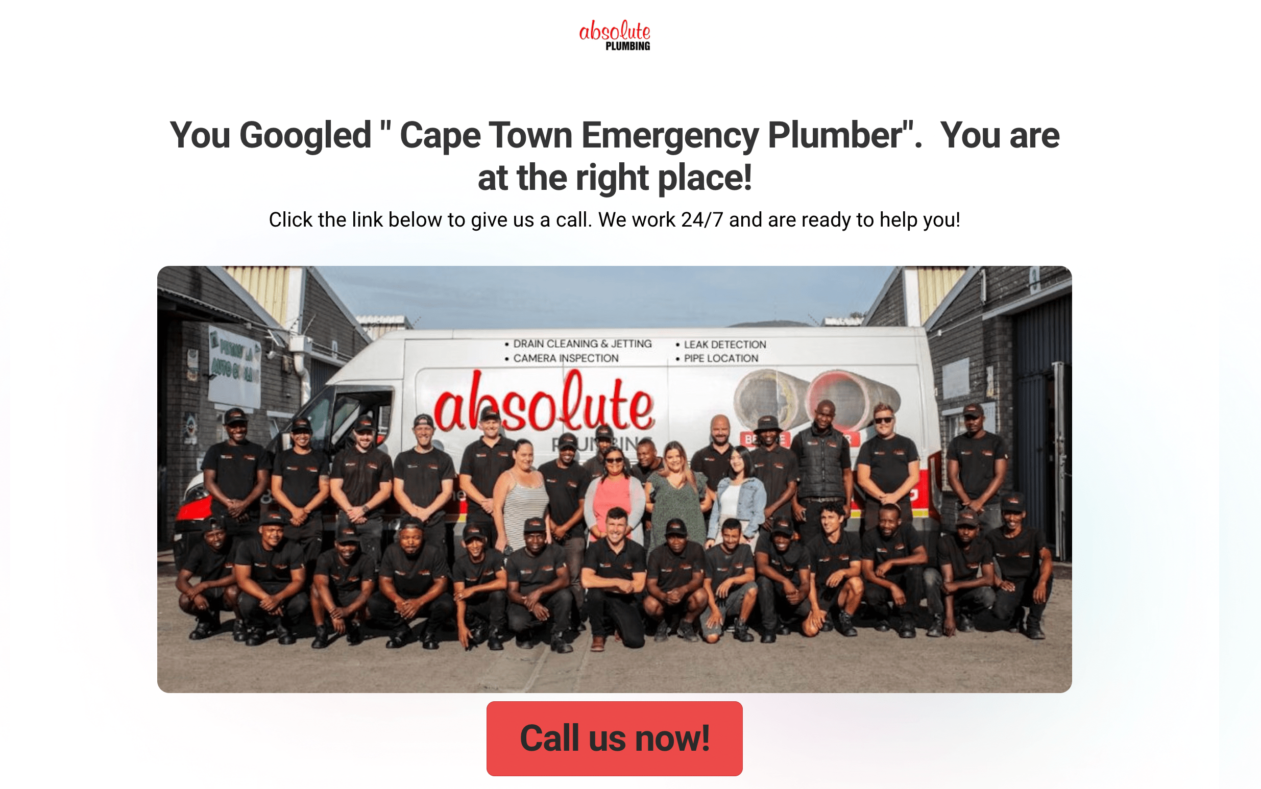 They land on a page that says “Emergency Plumber Available Now in Cape Town – We’ll Be There in 30 Minutes.”