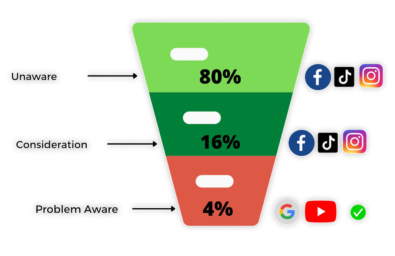 - YouTube Ads - This is where the magic happens. We use YouTube to retarget people based on their Google searches, competitor websites they visit, and channels they watch.
