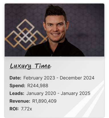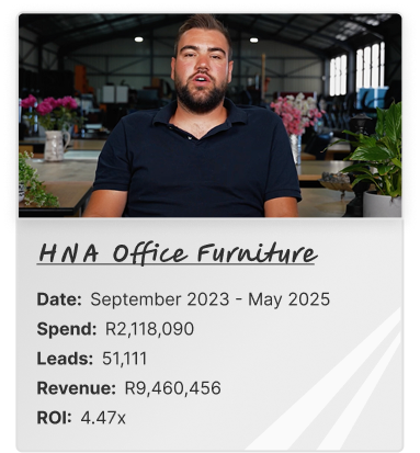 A: During your strategy session, we’ll discuss investment options based on your specific needs and budget. But we only work with businesses who have at least R30,000 per month in marketing budget because the LeadMachine requires proper ad spend to be effective.