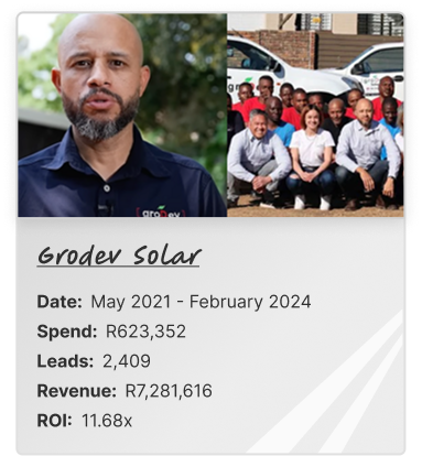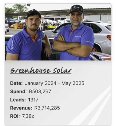A: The LeadMachine works for any B2C service business or B2B business selling broad services. We’ve used it successfully for solar companies, accounting firms, dental practices, consulting businesses, and dozens of other industries. If you’re doing R10+ million annually and selling services over R15,000, it will work for you.
